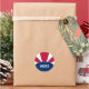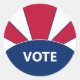 Este pegatina de voto anima a sus conciudadanos a votar. Es roja, blanca y azul y tiene un patrón de explosión de sol. La palabra voto aparece en texto blanco sobre la parte "sol" del diseño.