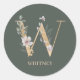Letra W monograma floral. Letra W en textura marrón dorada acentuada con hojas de compuestos de acuarela verde, flores y polvo de oro. Personalizado con el nombre en el tipo de letra coincidente.