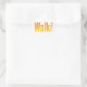 Este diseño de Walk Tall está lleno de un gradiente naranja y amarillo. La "L" a pie es una vara de medida o una regla. La palabra "Walk" es horizontal. La palabra "Tall" es vertical.