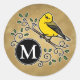 Pegatina Redonda Warbler Prothonotario Amarillo Alegre con Monogram