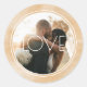Celebrate your LOVE with family and friends with this modern holiday or wedding photo sticker. It features a caramel, gold agate watercolor background and a beautiful hand drawn circle photo frame. Perfect for the bride and groom to share their favorite wedding photo. Personalize this photo sticker with your custom custom photo and greeting. Matching items are available.