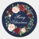 Feliz Navidad. Elegante acuarela de fondo azul con acuarela Borgoña Marsala Navidades florales favorecen a Pegatinas y Pegatinas de regalo. Incluye hermosos rosas y vegetación botánica.
