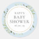 Este elegante pegatina botánico de ducha de niños con hojas de eucaliptos acuáticas de fondo azul puede personalizarse con los detalles especiales de su ducha de bebé. Perfecto como sellos para sobres o favorece las etiquetas pegatinas. Diseñado por Thisisnotme©