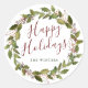 Pegatina Redonda Watercolor Holly Berry Wreath Happy Holidays