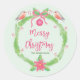Pegatina Redonda Watercolor Holly Wreath "Feliz Navidad"