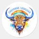 Pegatina Redonda Watercolor Nativo Estadounidense Bison Indian Head