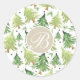 Pegatina Redonda Watercolor Pine Trees Moderno Rustic Monograma Kra