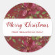 Pegatina Redonda Watercolor Poinsettia Feliz Navidad