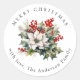 Pegatina Redonda Watercolor Poinsettia Holly Red Berries Christmas