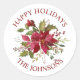 Pegatina Redonda Watercolor Red Poinsettia Navidades Felices Fiesta