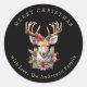 Pegatina Redonda Watercolor Reindeer Holly Berries Christmas