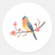 Pegatina Redonda Watercolor Songbird on Pink Cherry Blossom Branch