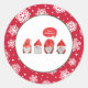 Pegatina Redonda Watercolor Whimsy: Gnome Santas Feliz Navidad