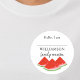 This Family Reunion name tag is decorated with red watercolor watermelon slices.
