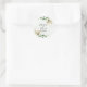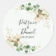 Pegatina Redonda Wedding Bride Groom Name Green Floral Eucalyptus