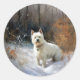 Pegatina Redonda West Highland White Terrier deja que nieve Navidad
