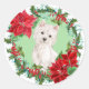 Pegatina Redonda Westie Poinsettia Holly Wreath