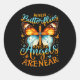 Pegatina Redonda When Butterflies Appear Angels Are Near Cross
