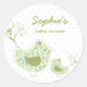 Pegatina Redonda Whimsical Blue Damask Mommy Bird & Boy Baby Shower