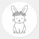Pegatina Redonda Whimsical Bunny with Floral Crown Line Art