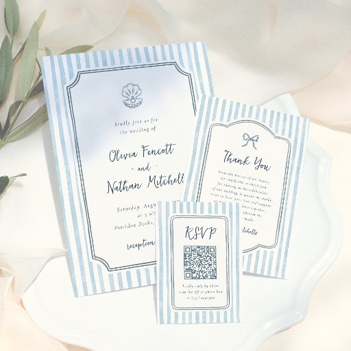 Whimsical Retro Blue Stripes WeddingDiseñado por Kaliste Ananda