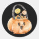 Pegatina Redonda Whimsical Watercoloración Calabaza Vela Halloween
