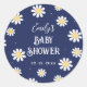 Pegatina Redonda White Daisies Spring Summer Boy Baby Shower