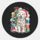 Pegatina Redonda White English Golden Retriever Santa Hat Christmas