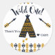 Pegatina Redonda Wild One First Birthday Blue Gold Tepee Party Favo