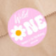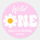 Pegatina Redonda Wild One Pink White Daisy Retro Primer Cumpleaños