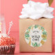 Pegatina Redonda Wild One Safari Fiesta de cumpleaños Green Gold Ec