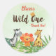 Wild One, Safari First Birthday pegatinas. Este bonito diseño cuenta con cinco animales de safari acuarelas y hojas de estilo jungla. agrega tu texto personalizado para crear tu propio plato fiesta especial. Para mayor coordinación de los suministros de un fiesta silvestre, por favor visite MetroEvents en Zazzle. Para diseños personalizados, póngase en contacto con Metro-Event.com.