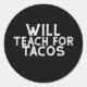 Pegatina Redonda Will Teach for Tacos