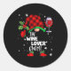Pegatina Redonda Wine Lover Gnome Red Buffalo Plaid Matching Family