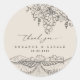 Celebre su día especial con este pegatina de agradecimiento a su boda de bodega, que presenta un encantador diseño de viñedos inspirado en la región vinícola de California y Napa. Perfecto para sellar invitaciones a bodas, favores o tarjetas de agradecimiento, este pegatina redondo clásico añade un toque elegante a cualquier tema de boda rústico o vitícola. Ideal para los amantes del vino, los bodas de Napa y las celebraciones de los viñedos al aire libre.