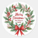 Pegatina Redonda Winter Berries Wreath Red Bow