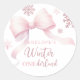 Pegatina Redonda Winter Onederland Pink Bow Girl 1st Birthday