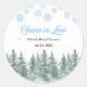 Winter Pine Forest Snow in Love Snowflakes Bridal Shower Classic Round Sticker.