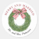 Pegatina Redonda Winter Pine Wreath Bow Merry & Married Christmas