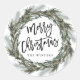 Pegatina Redonda Winter Pine Wreath Feliz Navidad Clásico Ronda S