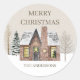 Pegatina Redonda Winter Snow House Pine Tree Merry Christmas Name