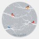 Agradable escena invernal con ramas blancas, pájaros coloridos y una caída de la nieve. Hermoso paisaje invernal con pájaros en amarillo, naranja, azul y rojo. Personalice cambiando el texto.
