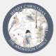 Pegatina Redonda Winter Wonderland Snowman and Bird Pattern