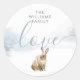 Personalice su nombre en este pegatina de vacaciones de moda con una liebre sobre un fondo boscoso de invierno.
