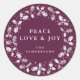 Pegatina Redonda Winterberry Peace Love + Joy Holly Wreath