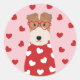 Pegatina Redonda Wire Fox Terrier Dog Glasses Heart Pink