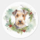 Pegatina Redonda Wirefox Terrier Navidades Wreath Festive Pup