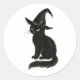 Pegatina Redonda Witch’s Cat – Black Ink Halloween Illustration on