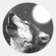 Pegatina Redonda Wolf Howling en la Luna