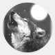 Pegatina Redonda Wolf Howling en la Luna